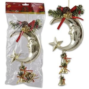 Please Click on The Image Below To See The Price, Reviews And Videos about #!Cheap 11"H Gold Plastic Moon and Star Christmas Decoration with Bell