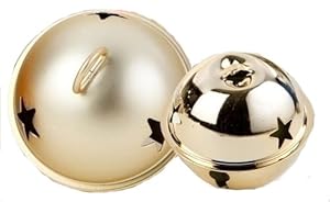 Decorative gold colored jingle bell ornaments feature star cut-out designs