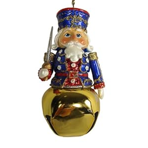 Happiness is just a jingle away with this intricately detailed nutcracker ornament; the bottom jingle bell portion of the ornament is shiny gold colored