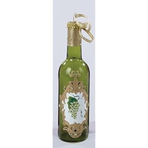 5.5" Tuscan Winery Glass Green Wine Bottle Christmas Ornament-From the Tuscan Winery CollectionItem #J4775Green glass wine bottle has been delicately crafted and adorned with the image of a bunch of green grapesEmbellished with gold glitter scrollwork trim and accented with green rhinestonesFully dimensional ornamentComes ready-to-hang on a gold cordDimensions: 5.5"H x 1.25"WMaterial(s): glass