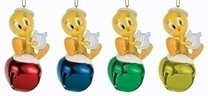 Each ornament features Tweety Bird sitting atop a colorful jingle bell