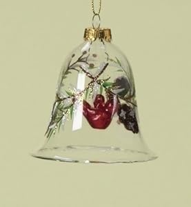 Elegant ornaments feature glass bells with painted branches and cardinals
